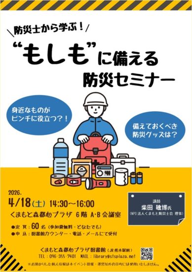 内容:いつ・どこで起こるのか全く予想がつかない災害に日頃から備える術を学びましょう。「アレってそんなことにも使えるの!?」身近なものが、命を救うカギになるかもしれません。