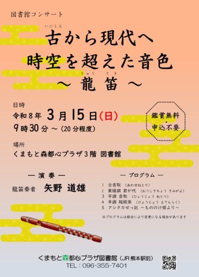 図書館コンサート「古から現代へ時空を超えた音色 ~龍笛~」