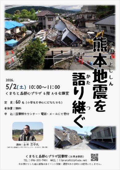 内容:熊本地震が起きてから今年で10年。皆さんの中には、10年前、まだ生まれていなかったという人もいるのではないでしょうか。これは、熊本で本当に起こったお話です。地震の恐ろしさ、命の大切さについて学びませんか?